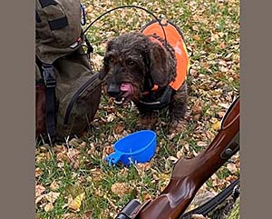 Nu är det Moltas bästa tid när han får vara ute på jaktmarkerna med husse på tu man hand för att kolla läget. Häromdagen fick han upp såväl en hare som en hjort och ett rådjur, men inget var skjutbart. Han var nöjd och glad i alla fall. På bilden som Ylva skickade är det vattenpaus, för man blir ju törstig av att kuta fritt i markerna.