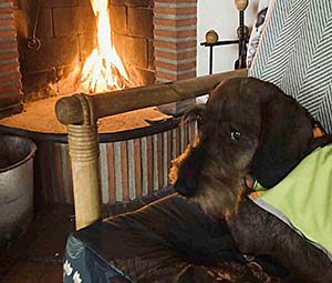 Så här i gråkalla november kan det vara skönt med en brasa. Det tycks han i alla fall anse, Nikolaj/Sixten, som tagit plats alldeles intill öppna spisen. Taxar verkar ju inte få nog av värme, antingen det är solen eller som här en eldstad. Husse Mats skickade bilden.