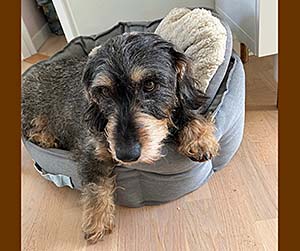 Det kom en bildhälsning från Isabella, som kallas Stina. Hon tycks i likhet med min Qnata gilla att ha en lite mindre korg, som hon kan knö in sig i. Till våren blir hon elva år, men det är fortfarande full rulle, berättar matte Kerstin, som skickade bilden.
